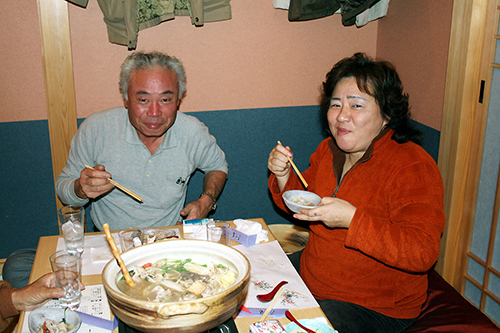 寒い時期はなべ物に限るおいしそうに召し上がる西本ご夫妻