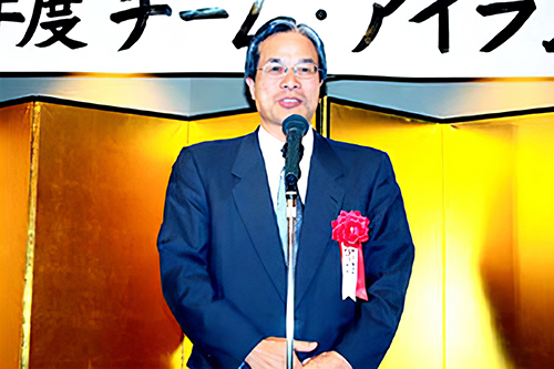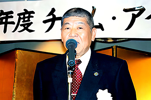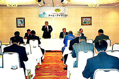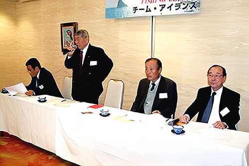 ![]() 出席された皆さんに感謝の言葉を述べとるとともに今年度から チームアイランズ独自で稚魚放流を行いたいと語る、國元会長 |