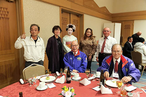 ![]() 終盤に舞妓はんを囲んで記念撮影 |