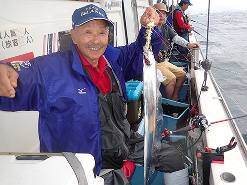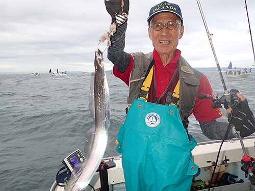 北西の風 海上 風力 4~5激しいローリング(横揺れ)全員、強風波受けながら苦戦を強いられ頑張った甲斐もなく期待したメーター級は お目にかかれずチビゴンばかりで一人平均10匹未満で終了した。年々減少傾向にある大阪湾のタチウオちゃん今後も余り期待できないようだ。 大会レポート:西本 正義