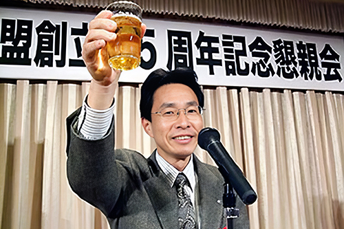 これまでの連盟の経過と今後の抱負などを淡々語る