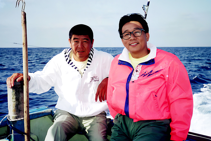 1991年5月、若い頃のオール阪神さんと一緒にトーローリング中、徳之島沖(太平洋側)