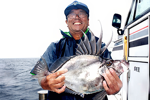 今回は、里波見漁港を拠点にどしゃぶりの雨の中、オキメバルをターゲットに