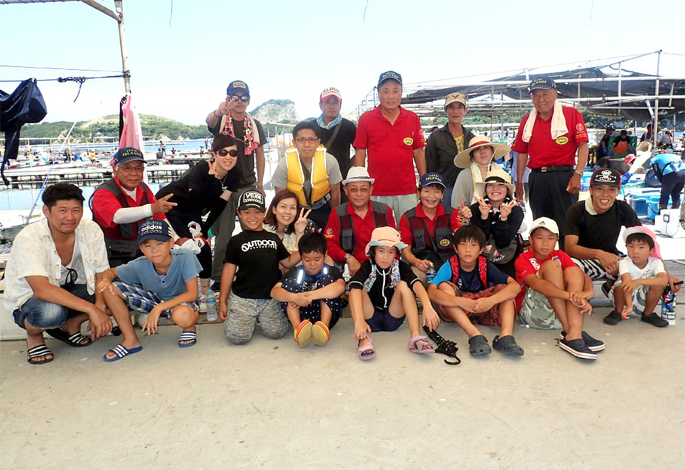 平成29年度、夏休み会員家族親睦釣り大会 2017年8月6日、家島諸島の西島にある海の釣り堀「海恵」に於いて会員家族22人が参加「夏休み会員家族親睦釣り大会」を行いました。 |