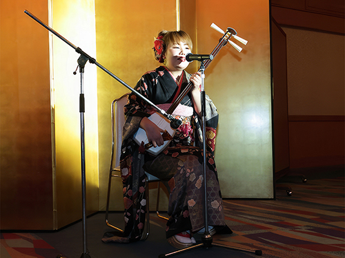 ![]() 友情出演、三味線持ち込み津軽の熱い音色を弾き鳴らす岡部祐樹に拍手大喝采 |