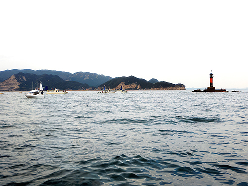 繋がるでしょう。明石西周辺から出船している各釣り船の巡航速度は燃費節約のため約12~14ノット、小豆島沖のマダイ釣り場に辿り着くには片道1時間20分ほど