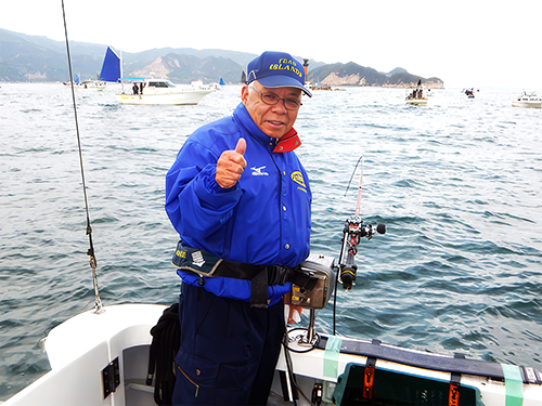 いつもニコニコ陽気な長井賢二さん、大きいタイは、なかなか釣れませんわ