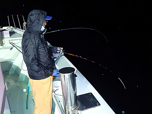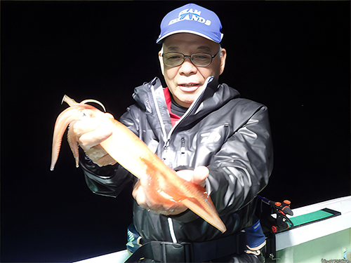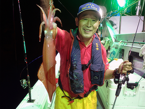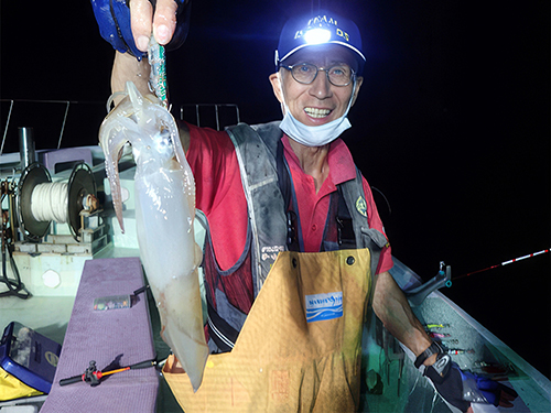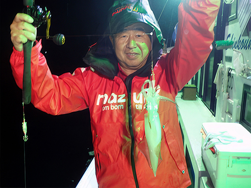 胴付浮きスッテ&イカメタルの二刀流で頑張る川田 務さん