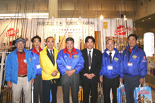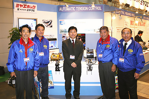![]() 電動リールメーカーミヤエポック椋木販売係長(中央) |
