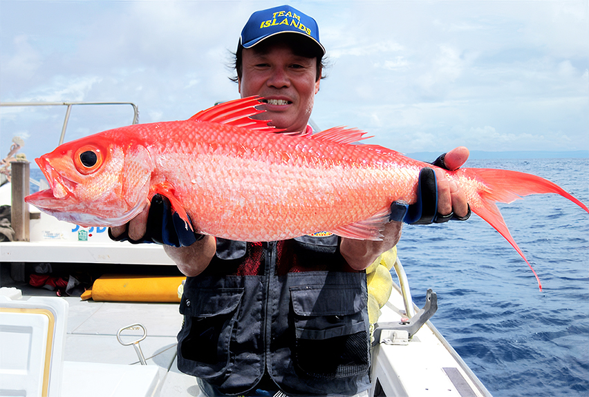 2015年7月20日、鹿児島県奄美大島沖で釣れた深海の最高級魚、オナガダイ(ハマダイ)