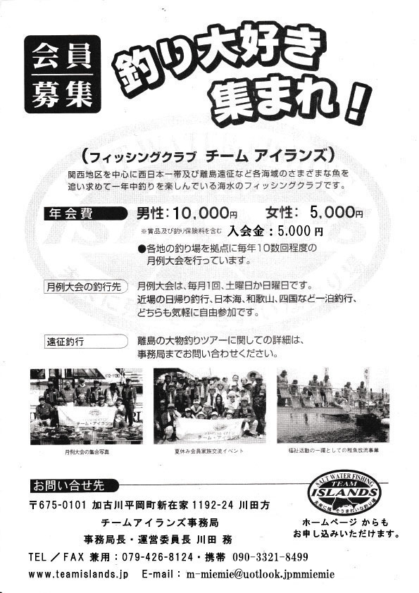1. 近畿地区の各釣り場を中心に毎月一回「 釣り大会」を開催 釣果を競う